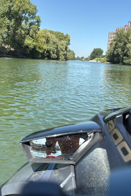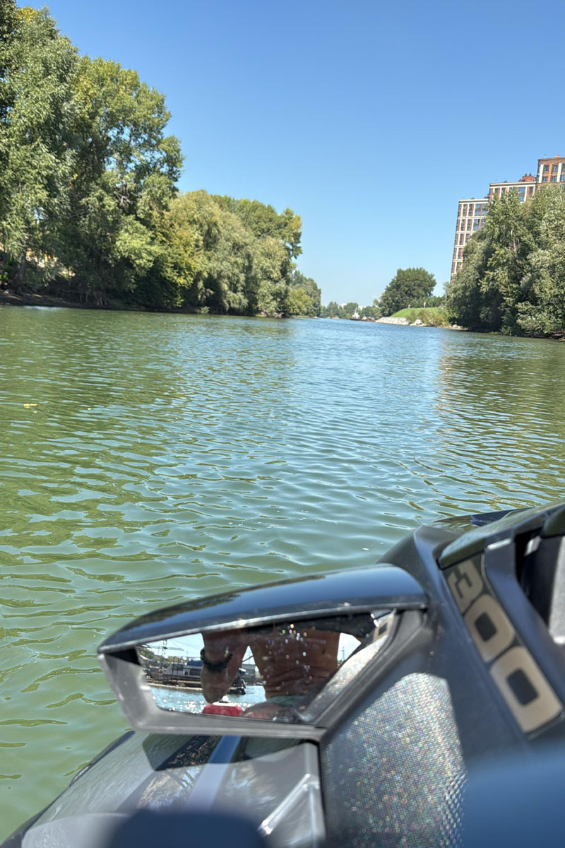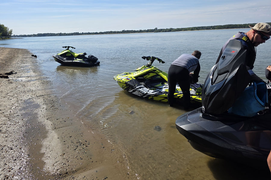 С самого начала день был наполнен энергией! После краткого инструктажа и проверки снаряжения гидроциклы неспешно вышли на воду. Спокойное движение позволило адаптироваться к особенностям речной акватории и согласовать взаимодействие между участниками. Уже через час плавания группа достигла острова Кораблик, где сделали короткую остановку для фотографий: блестящая на солнце вода, отражение зелени острова и радостные улыбки на лицах создавали атмосферу настоящего летнего приключения!