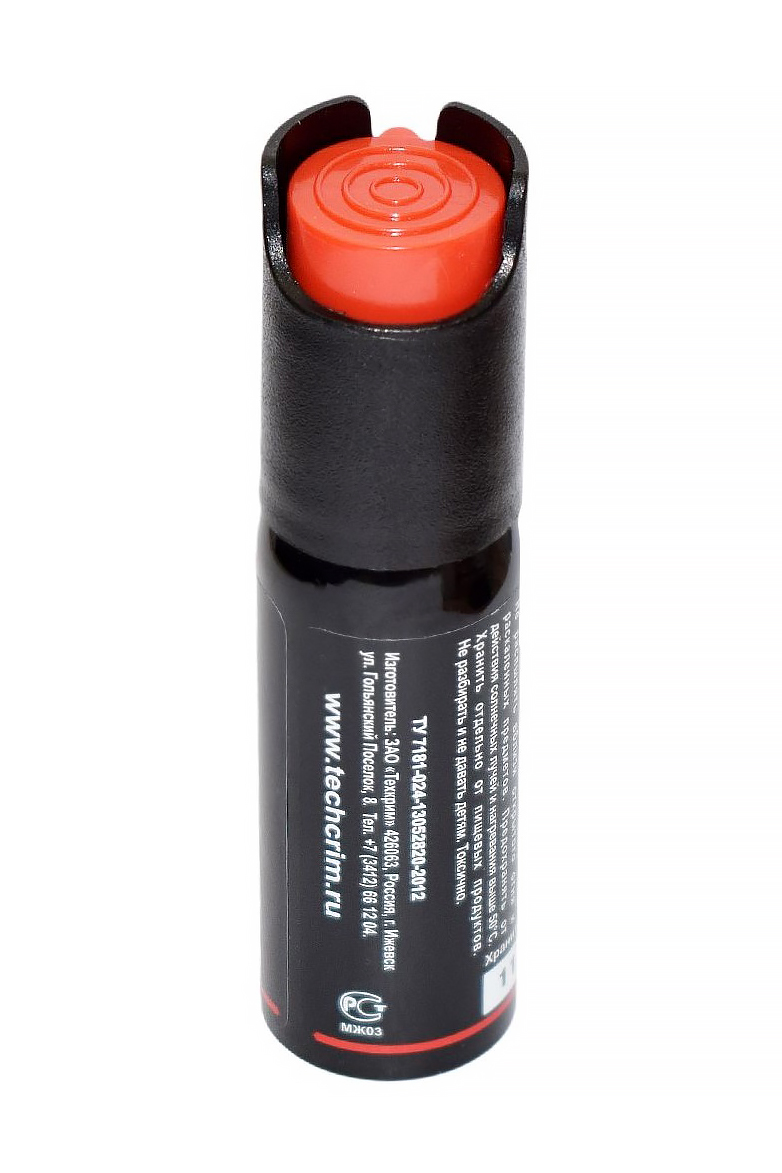 Данный баллончик производится российской компанией «Техкрим». За счет аэрозольно-струйного типа распыления вещество в короткий срок попадает в намеченную область и образует облако вокруг нападающего.