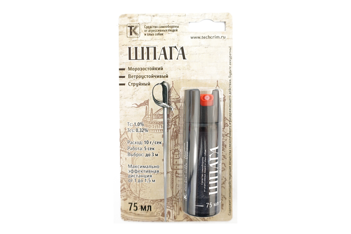 «Шпага», 75 мл – газовый баллончик с высокими поражающими характеристиками, надежное и безопасное для владельца средство самозащиты от агрессивных животных и людей.