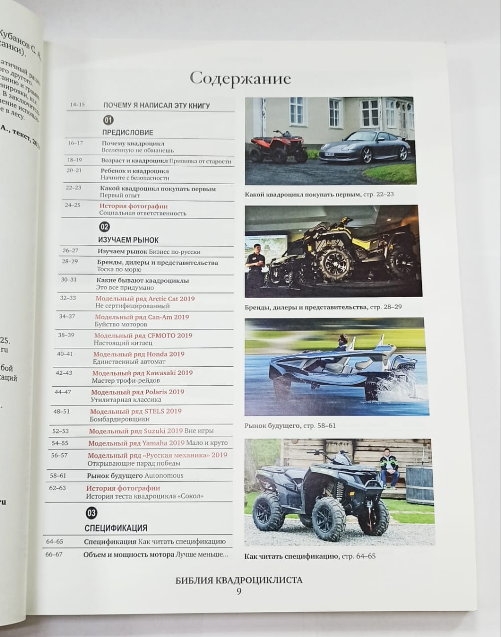 Библия Квадроциклиста архитектурно состоит из 14 разделов, которые логично отстроены от главного вопроса «что этакого в квадроцикле». И далее повествование развивается вдоль: