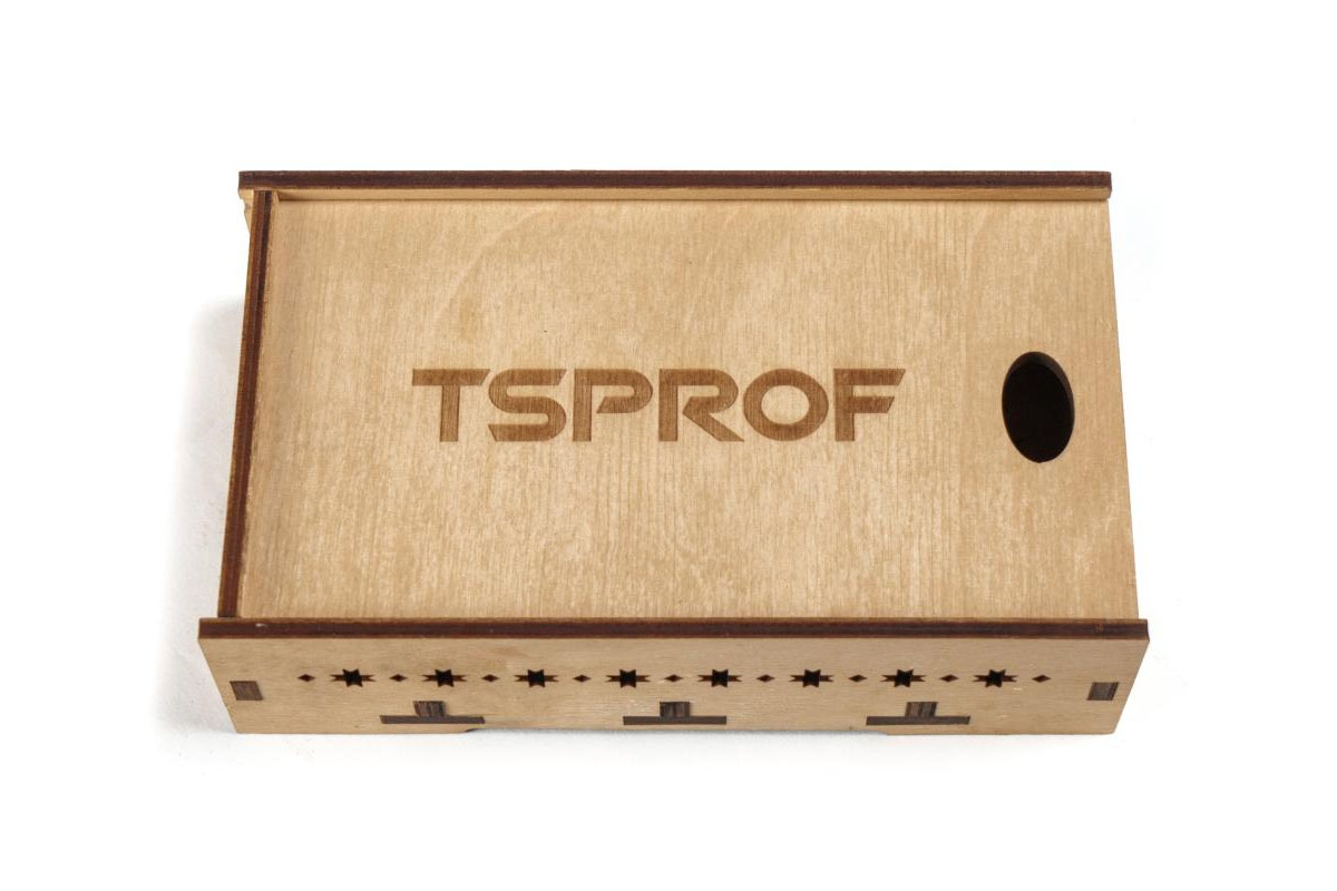 Бокс для хранения абразивных камней от TSPROF предназначен для размещения до 6 камней для заточки как на бланках, так и без них, толщиной до 10 мм. Размер брусков составляет 160 x 10 x 25 мм, что обеспечивает их надежное закрепление в ложементах. Для эффективной просушки камней после использования, в стенках и дне бокса предусмотрены вентиляционные отверстия, выполненные в виде национального удмуртского орнамента. Бокс оснащен выдвижной крышкой с логотипом TSPROF, что добавляет ему эстетической привлекательности.