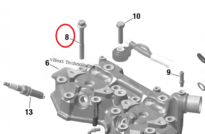 Этот шестигранный болт предназначен для надёжного крепления головки цилиндров в снегоходах BRP Ski-Doo.