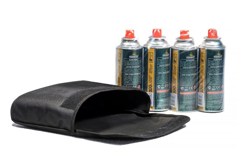 - В чехол можно поместить 4 баллончика и оставить их на долго в багажнике, имея запас горючего на крайний случай;