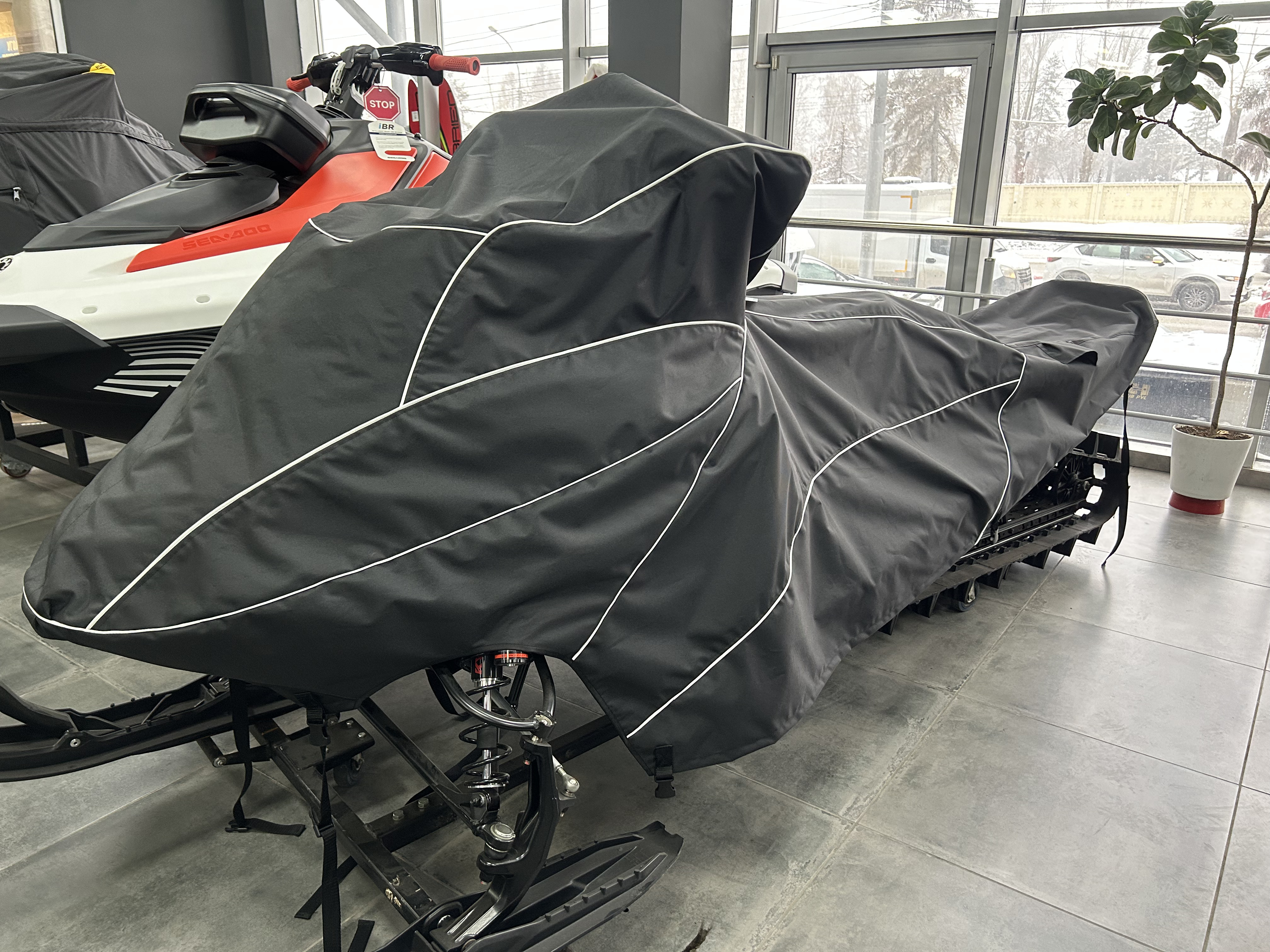 Чехол предназначен для защиты снегохода от внешних воздействий во время стоянки и транспортировки. Материары конструкции рассчитаны на эксплуатацию в условиях низких температур. Покрытие обладает водоотталкивающими свойствами. Чехол имеет определенную форму и систему креплений.