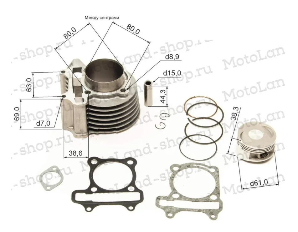 ЦПГ (поршневая) d=61mm 161QMK-B2 200см3 с реверсом (80/80/69/15) 0Ц-00000645
