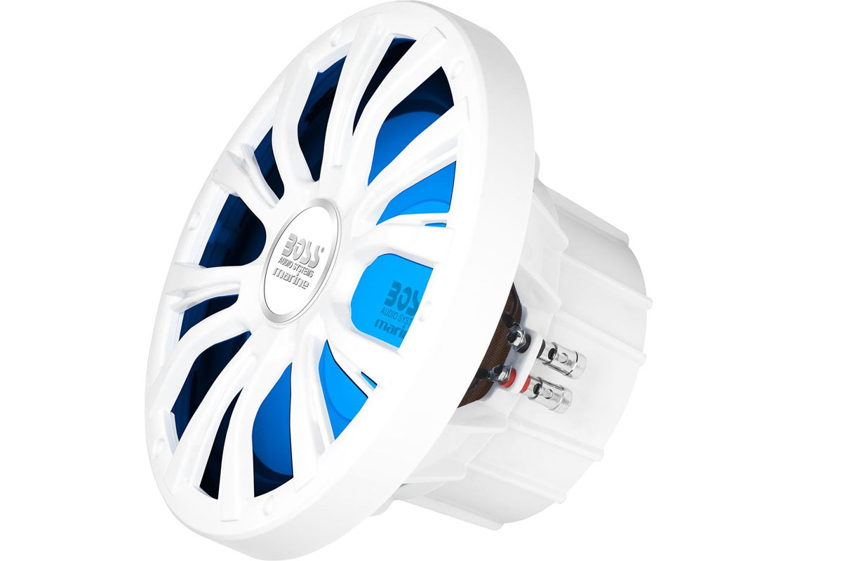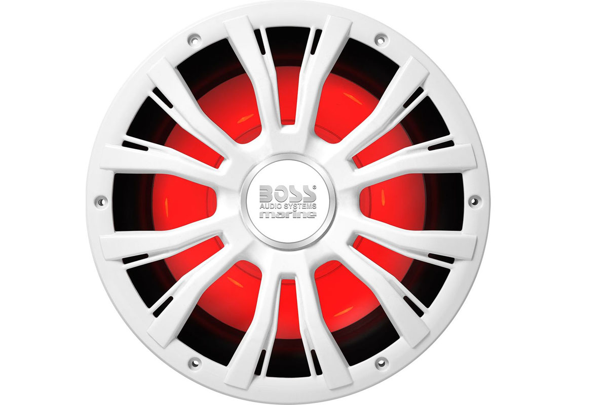 Динамик для сабвуфера BOSS MRGB10W 800W - низкочастотный динамик с диаметром диффузора 10 дюймов. Имеет степень защиты IP65. Комплектуется пультом дистанционного управления для RGB-подсветки. Корпус выполнен в белом цвете. Номинальное сопротивление составляет 4 Ома. Для работы требует подключения к внешнему усилителю.