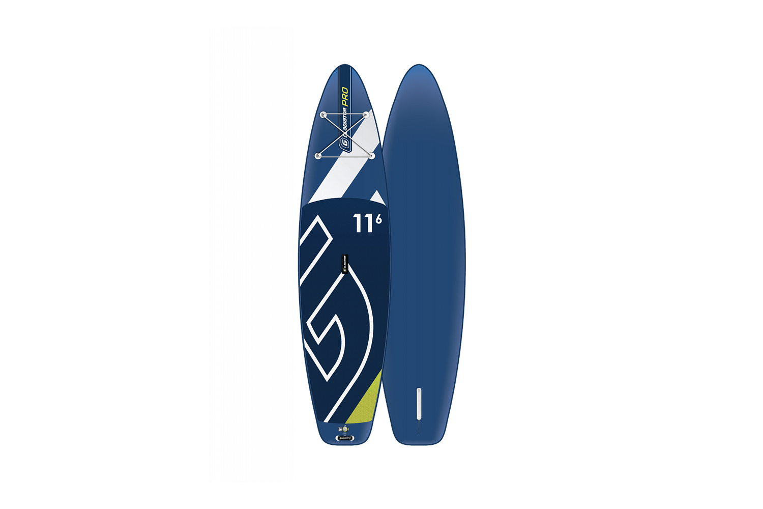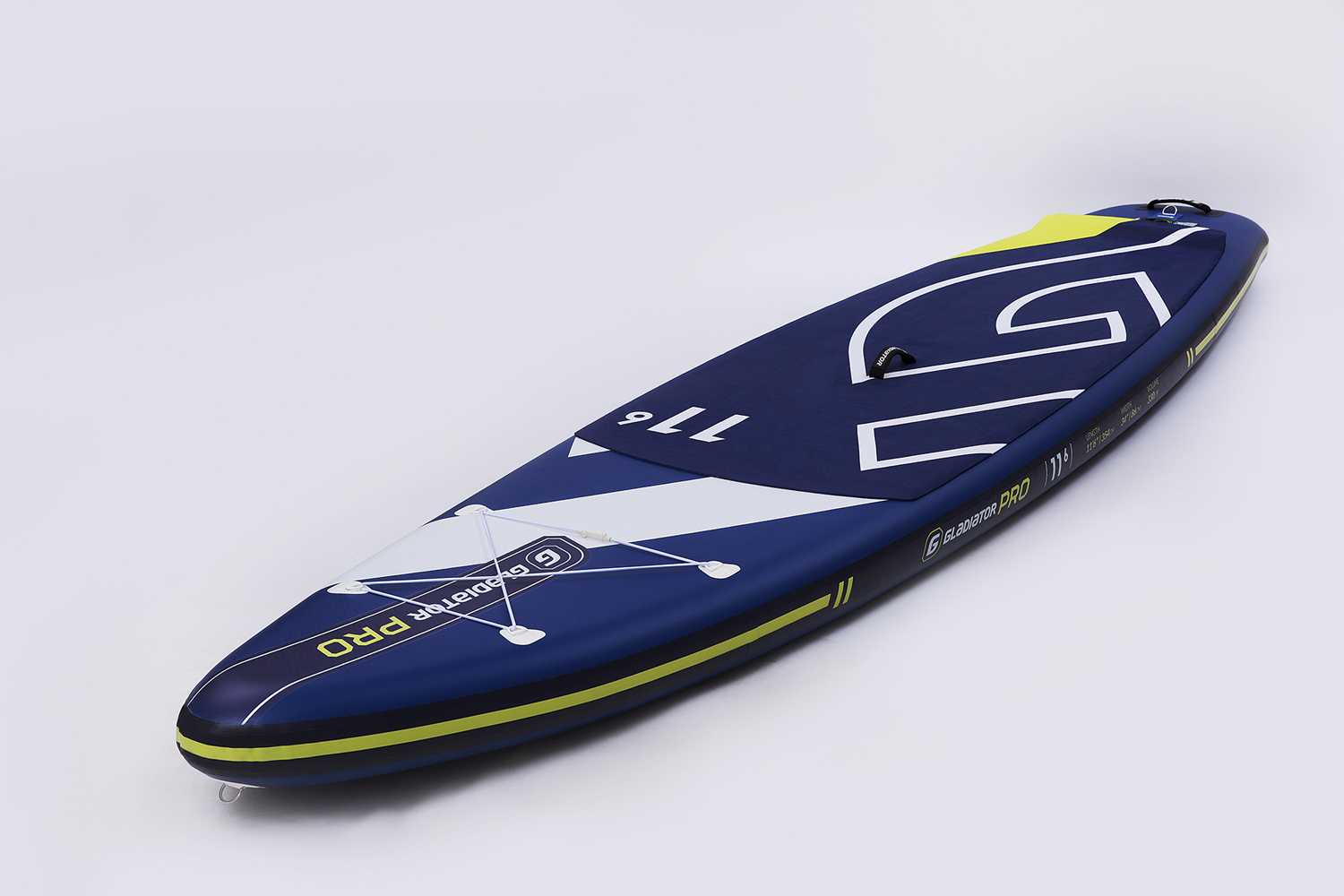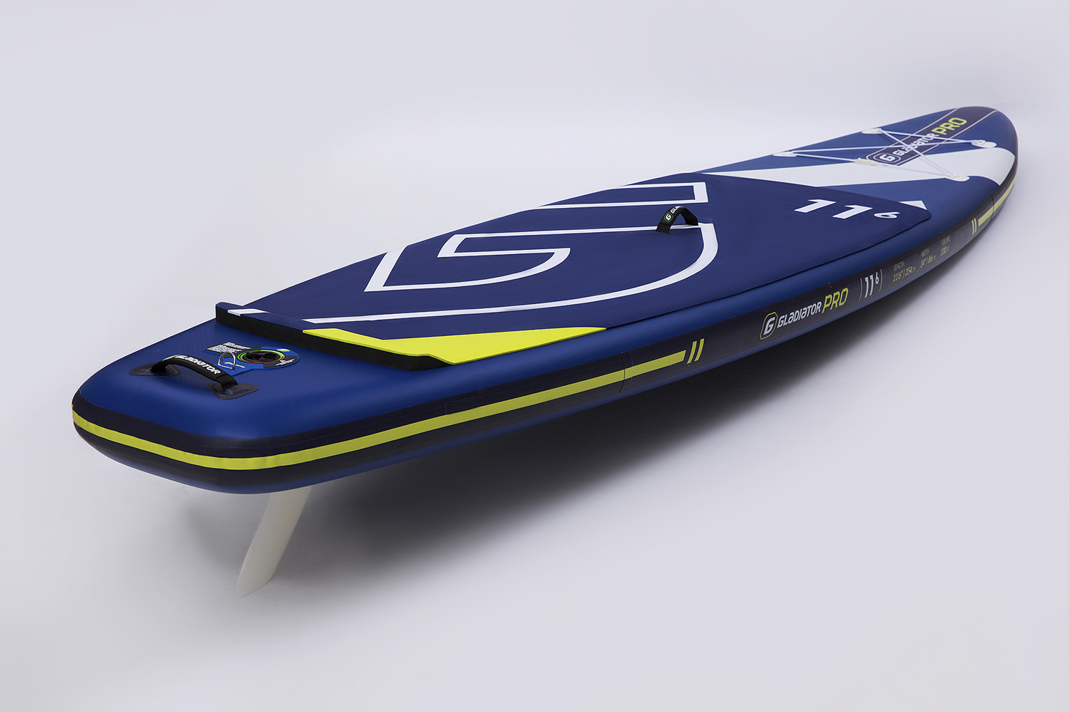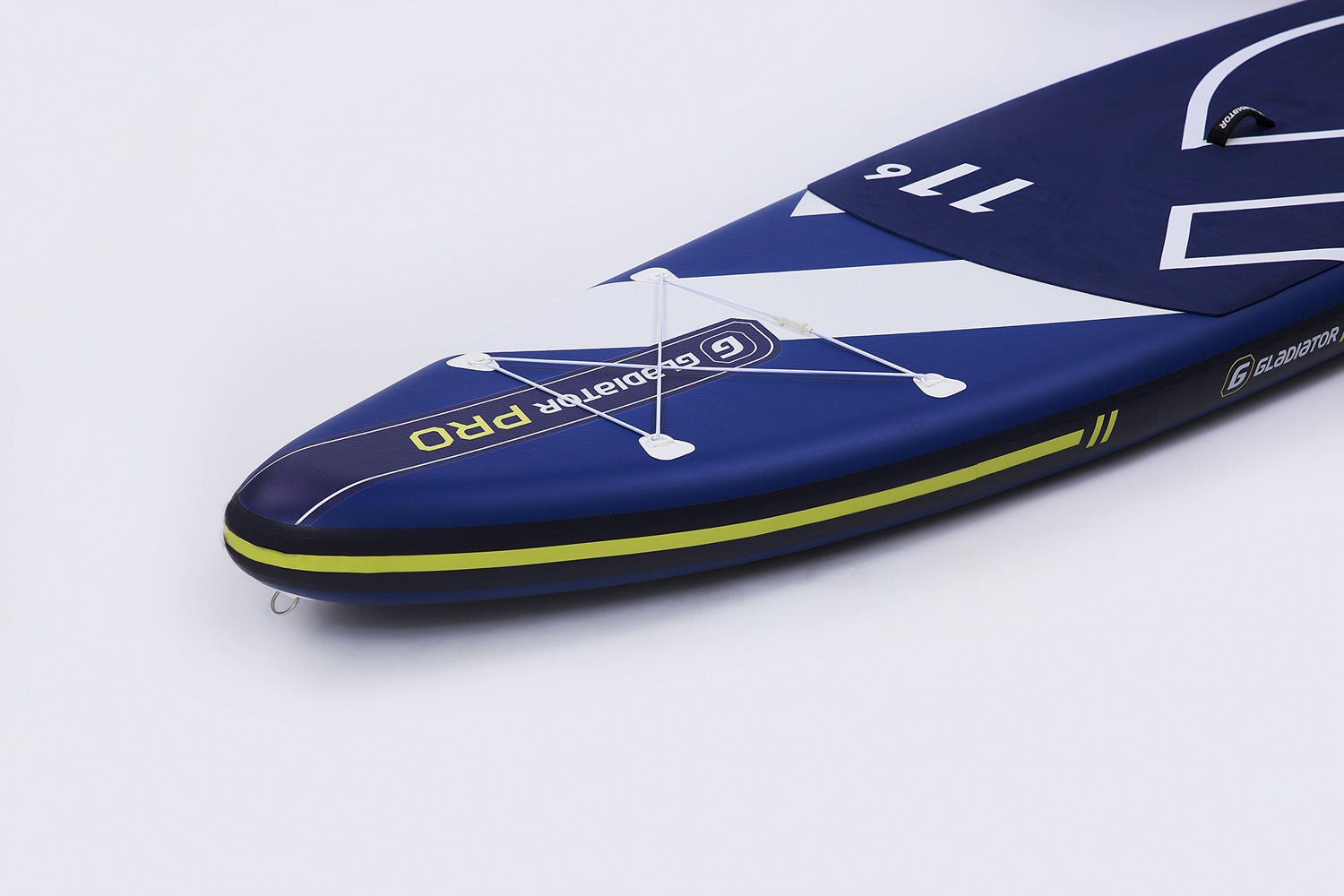 Для производства SUP доски Gladiator Pro 11’6 используется двухслойный ПВХ на прочной текстильной основе плотностью 1000 den. По краю модель отделана двойным усиленным кантом, изготовленным по инновационной технологии Xstrong edge. Он придает эффект «литой» доски. Жесткая, прочная модель уверенно и легко скользит по воде.