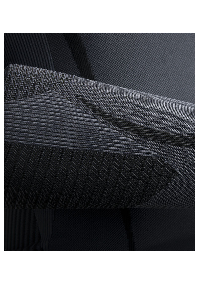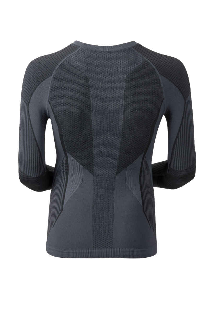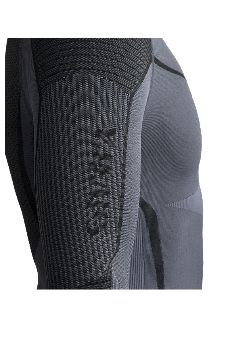 - Зонированная толщина трикотажа: усиленное плетение в области суставов, облегченное по бокам туловища.