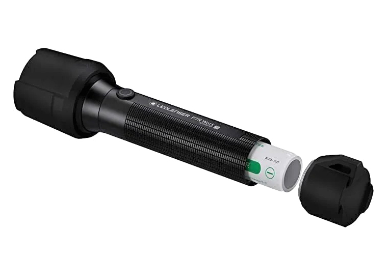 - LED Lenser P7R Work работает от аккумулятора, который заряжается с помощью магнитной системы зарядки. Такая система делает процесс заряда очень удобным. Когда батарея полностью наполнится энергией, то цвет индикатора, встроенного в кнопку питания, сменится с красного на зеленый. При уровне заряда менее 25 процентов фонарь переключается в экономичный режим и светит 2 часа световым потоком в 15 Лм.
