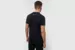 Футболка классического силуэта черного цвета. На груди расположен фирменный принт. На спине находится небольшой логотип. Модель выполнена из хлопка с добавлением эластана.