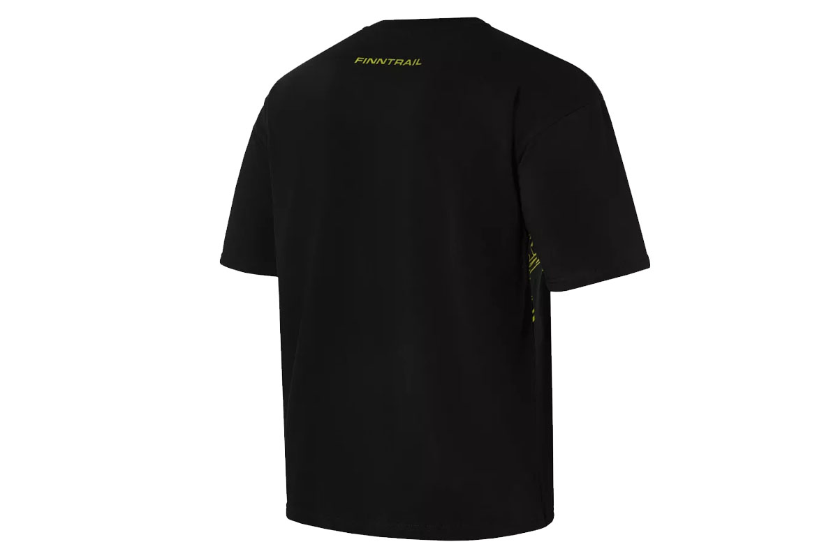 Представлена футболка марки FINNTRAIL, модель Snowmobile 6715. Она изготовлена из материала на основе хлопка с добавлением эластана. Модель имеет свободный силуэт и круглый вырез.