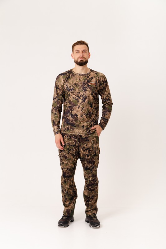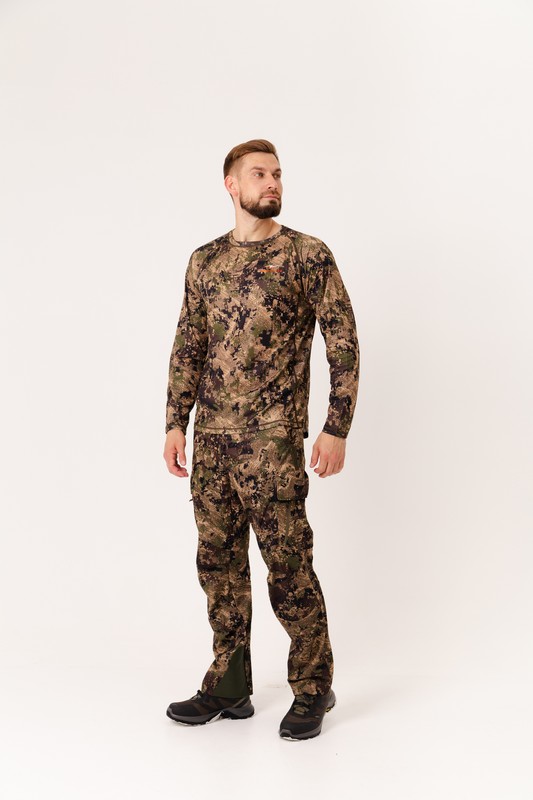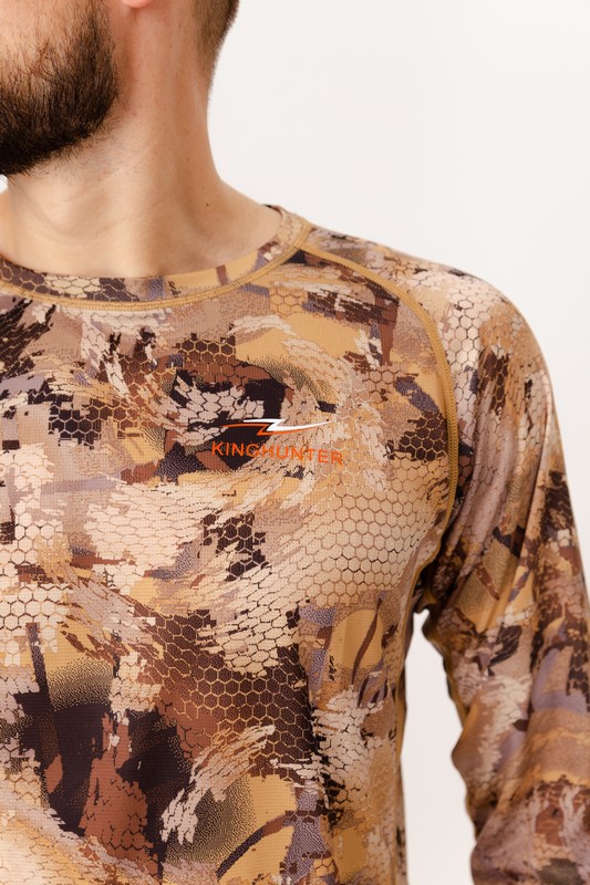 King Hunter PROTECTION — функциональная футболка с длинным рукавом, которая может использоваться в качестве нижнего влагоотводящего слоя, так и как самостоятельная единица в теплое время года. Материал футболки — полиэстер, который впитывает излишнюю влагу и мгновенно высыхает.