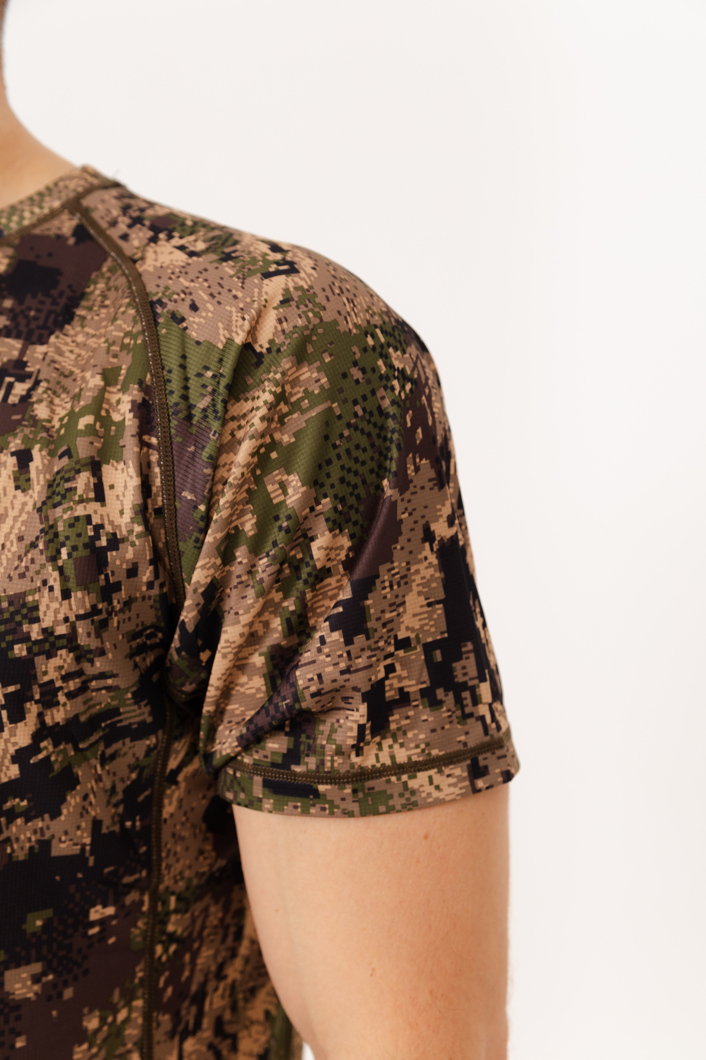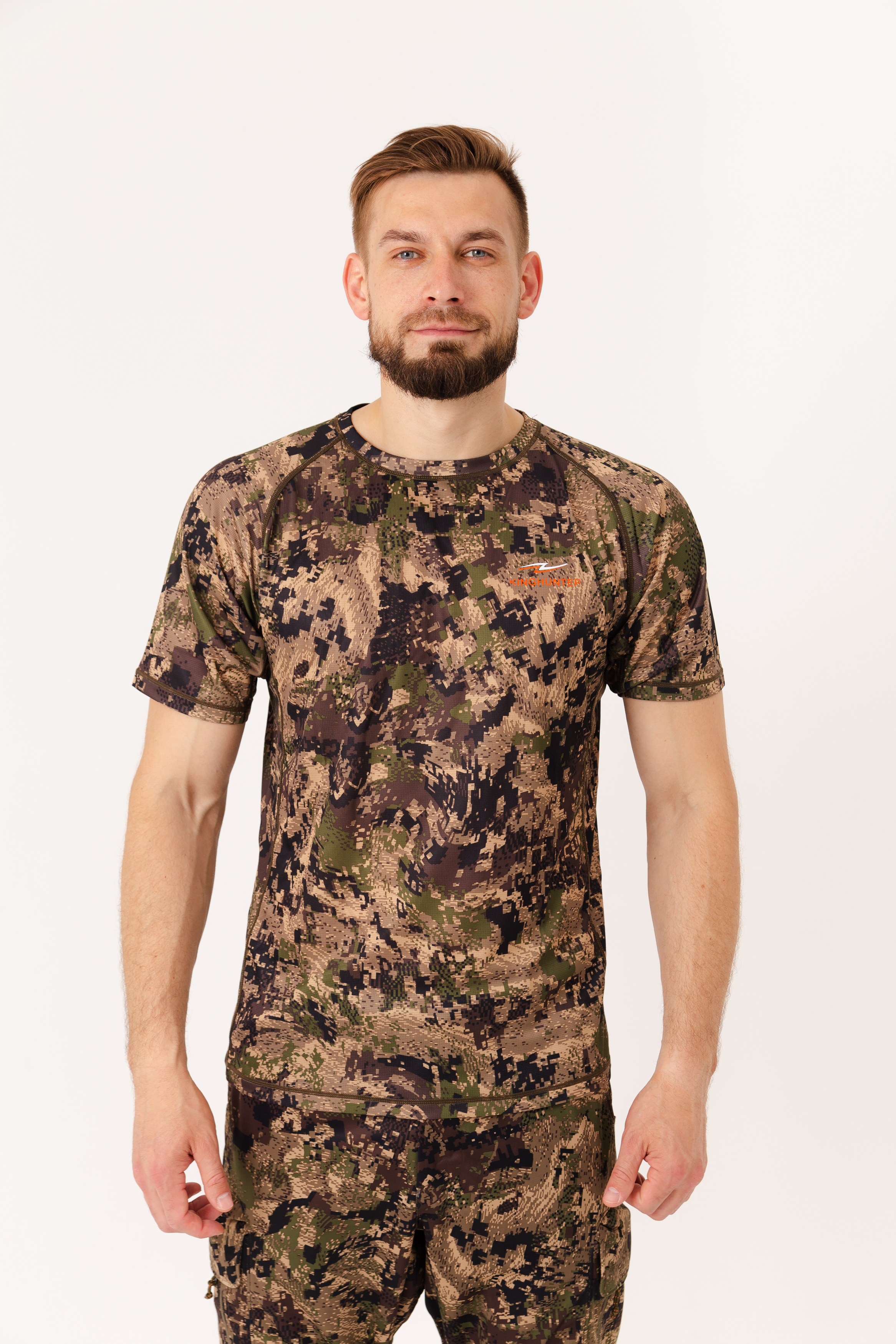 King Hunter VOLUTION — комфортная футболка, выполненная из легкого пароотводящего, быстросохнущего, дышащего материала, одинаково хороша в качестве базового слоя зимой и летом. Футболка идеальна для использования в жаркую погоду и при интенсивном передвижении, где необходимо обеспечить максимальный тепло- и влагоотвод.