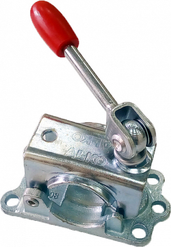 Усиленный хомут опорных элементов с удобной откидной ручкой используется для крепления опорного колеса или стойки (аутриггера) к дышлу или раме прицепа. Преимуществом над обычным хомутом является чугунное основание и большая площадь соприкосновения хомута с местом крепления на прицепе. При большой нагрузке, основание не загибается и не выламаевается. В месте зажима опоры имеются насечки которые предотвращают проскальзывание. Устройство крепления данного типа совместимо с прицепами Трейлер, Курганские прицепы, ССТ, ЛАВ, МЗСА, САЗ, Титан, AvtoS и прочими прицепами максимальной разрешенной массой до 3500 кг. Межцентровое расстояние между отверстиями для крепления болтов 105 мм.