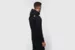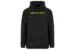 Худи из футера с начесом 320 г/м². Модель черного цвета имеет свободный силуэт. В комплектацию входит капюшон и накладной карман.