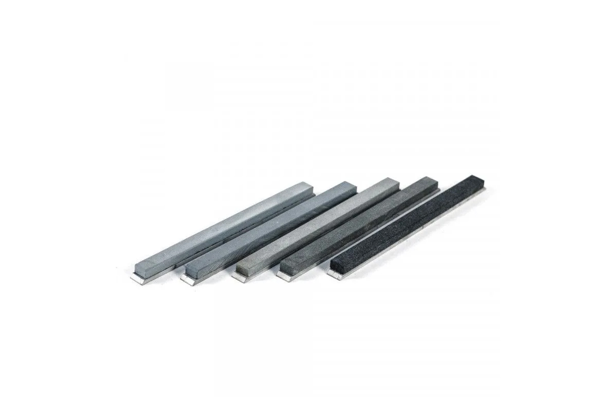 Абразивы Профиль подходят для заточки широкого диапазона сталей, в том числе твердых, порошковых сталей твердостью выше 60 HRC. Такого набора будет достаточно для всех видов работ, от обдирки до финального шлифования. Узкие камни более удобны для заточки S-образной РК, вогнутого лезвия и режущего инструмента небольших размеров.