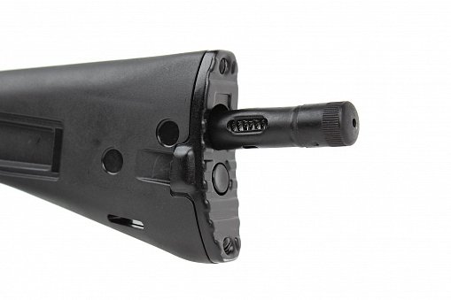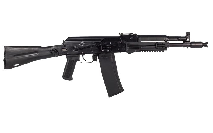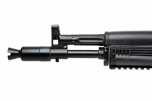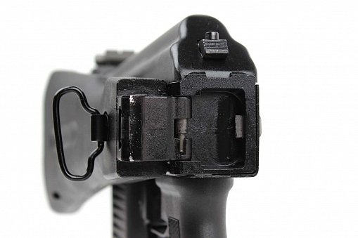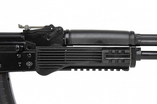 Карабин комплектуется складным вбок пластиковым прикладом и автоматической блокировкой спускового механизма, не допускающей стрельбу при сложенном прикладе. На ствольной коробке выполнена боковая планка для установки оптических прицелов.Прицельные приспособления механические, по типу укороченного автомата АК102. На ствол может устанавливаться колодка мушки с макетом пламегасителя. Карабин использует отъемные магазины на 10 патронов, для применения в спортивных соревнованиях могут использоваться магазины емкостью 30 патронов
