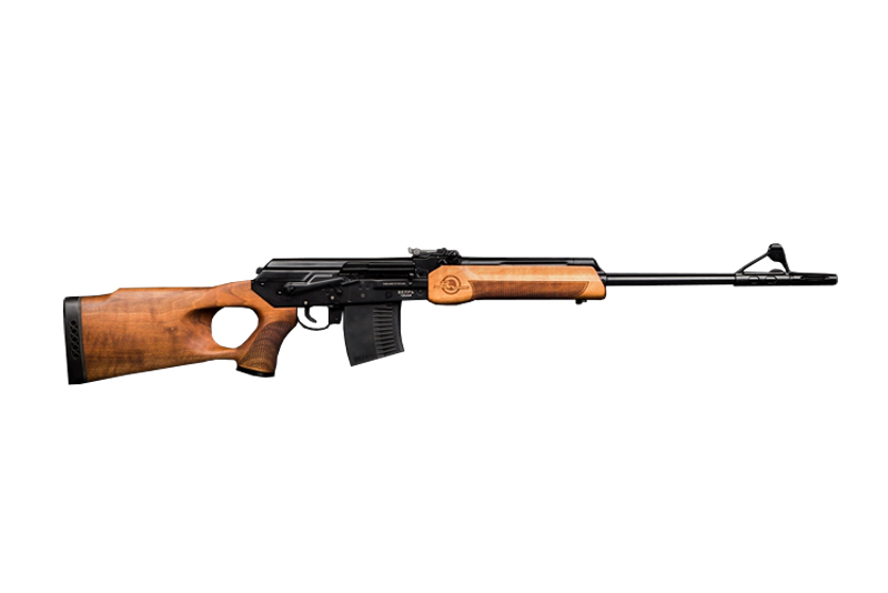Карабин Вепрь - охотничий самозарядный нарезной карабин для промысловой и любительской охоты на крупного и среднего зверя. Эксплуатация карабина возможна при температурах от +50°С до -50°С. Стрельба из карабина ведется нарезными патронами калибра 7.62х54. Отъемный магазин вмещает в себя 5 патронов данного калибра. Ударно-спусковой механизм куркового типа. Приклад и цевье выполнены из высококачественной древесины.Характеристика