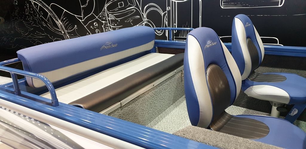 Вместо дешевых кресел производитель поставляет NorthSilver Pro 470 с креслами фирмы ATTWOOD. Сиденья складные, легко снимаются и прячутся под консоли для освобождения пространства в кокпите под спальные матрасы для ночлега. Кормовой диван-рундук оснащен стационарным валиком для спины и формованной подушкой с мягким упругим наполнителем. Внутри дивана находится запираемый рундук, предназначенный для хранения спальных матрасов, палаток, сумок и другого объемного багажа.