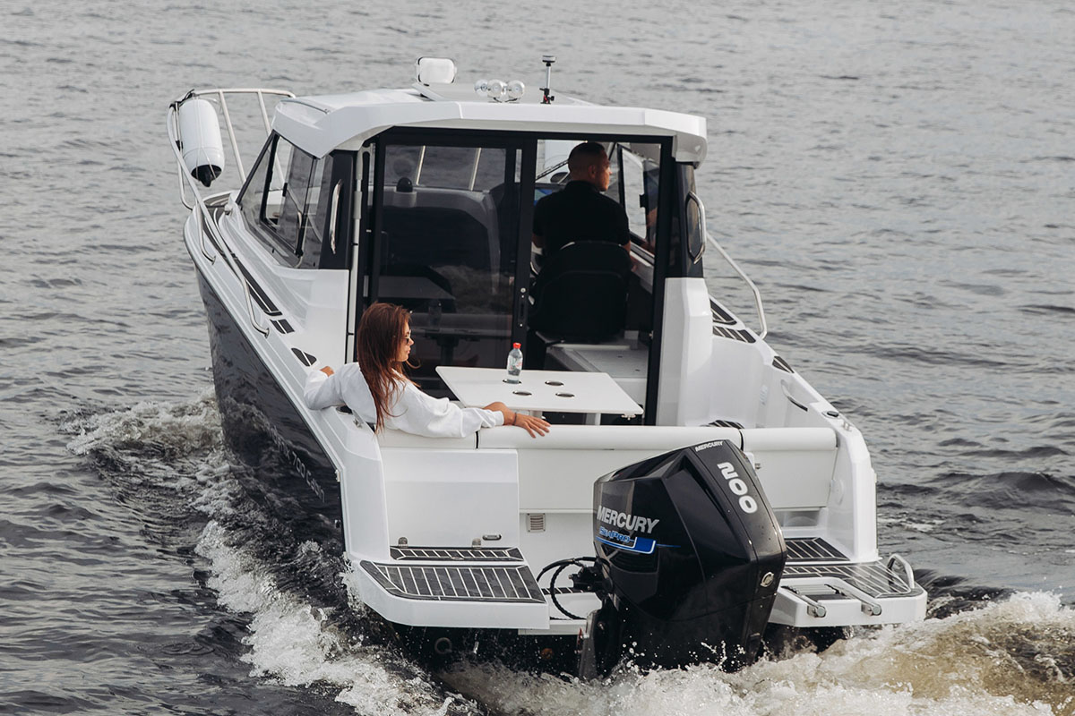 Катер длиной 7,09 метра с закрытой рубкой и возможностью ночевки. Модель российской верфи СПЭВ предназначена для семейного отдыха на воде и путешествий. Корпус выполнен из стеклопластика с толщиной днища 16 мм. Внутреннее пространство включает камбуз с мойкой и гальюн. Бак для пресной воды рассчитан на 45 литров.