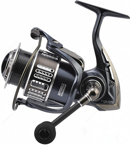 Серия катушек Mitchell Mag Pro Extreme создавалась при участии инженеров из Японии. В катушках используется легкая гибридная граффито-алюминиевая шпуля, основной вал из титана, магниевый сверхлегкий корпус, ротор и крышка, благодаря чему снижен вес этих моделей по сравнению с Mag Pro Lite. При этом на высоте остаются функциональность, прочность и надежность катушек Mag Pro Extreme. Особенности: Алюминиевая легкая шпуля с двойным анодированным и графитовым якорем, запасная шпуля из алюминия. 10 шарикоподшипников из нержавеющей стали, 3 из них – защищенные подшипники XCR, расположенные в самых ответственных узлах (шестереночный механизм и основной вал). Алюминиевая цельная дужка. Ролик из титана с профилем. Который предохраняет от закручивания лески. Карбоновая рукоять для снижения веса с неопреновым наконечником. Герметичная система торможения CarbonDrag. Подпружиненный клип для лески. Защита от соленой воды.