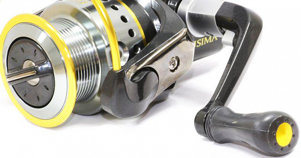 С целью снизить общую массу конструкции, при производстве основных деталей корпуса применяют современные полимеры. В моделях Ecusima установлены V-образные роторы, которые благодаря точной балансировке даже при высоких скоростях вращения не создают больших вибраций. Чтобы увеличить срок эксплуатации механизма и повысить его надежность, внутри устанавливаются пять подшипников (четыре шариковые и один роликовый). Еще предусмотрена система анти-реверса, которая не дает ротору случайно провернуться в обратном направлении. Металлическая шпуля облегчена за счет перфорации и ее лесоемкость может варьироваться от 145м/0,205мм до 230м/0,405мм. Фрикцион передний, с максимальными нагрузками от 2,5 до 8кг. Кноб прорезиненный, может быть Т-образным или плоским. Нажав специальную клавишу на ручке, мы получаем возможность прижать ее к катушке. А также можно переставить рукоять и из леворукого варианта сделать праворукую модель.