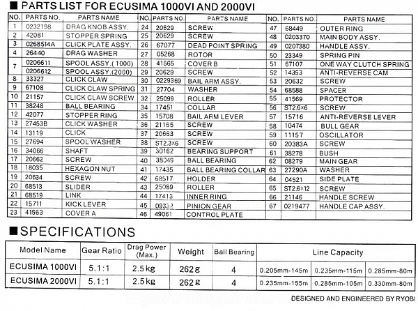 Безынерционные катушки Ecusima производятся хорошо известной нашим спиннингистам компанией Ryobi. Товары этого брэнда уже давно стали популярными среди отечественных рыболовов. Вот и эта линейка недорогих, но надежных катушек не стала исключением.