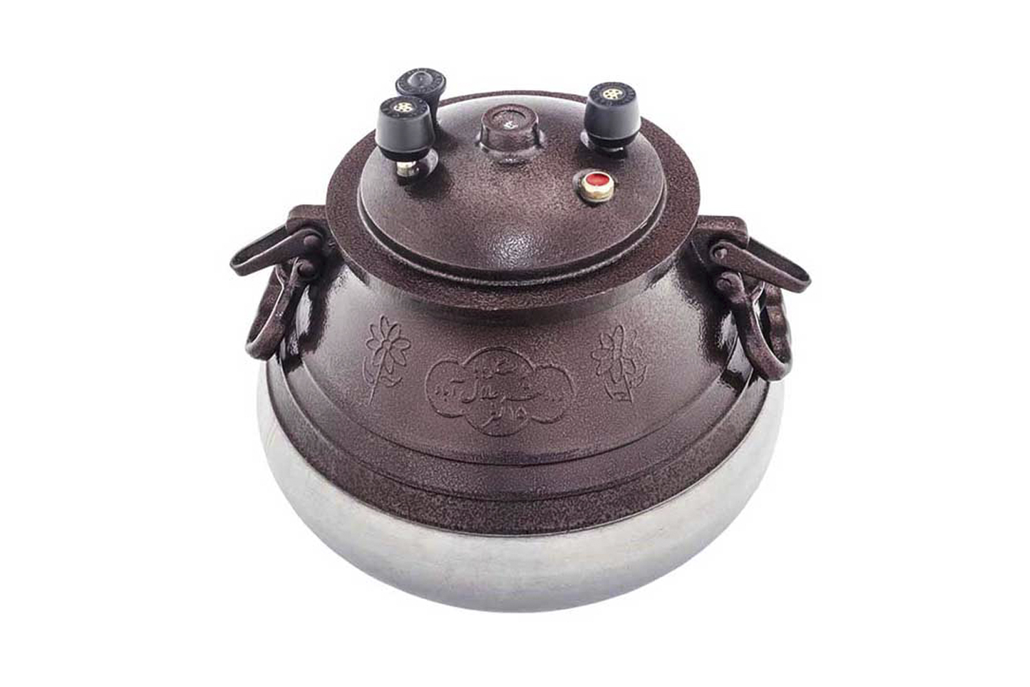 Данный казан имеет широкую форму у основания, а значит большую площадь нагрева. Оснащён герметичной крышкой с резиновой прокладкой, на которой имеется 3 клапана для выпуска пара: 2 рабочих и 1 аварийный для безопасности. Качественное прижимное устройство с ручкой, добавляет комфорта в использовании.