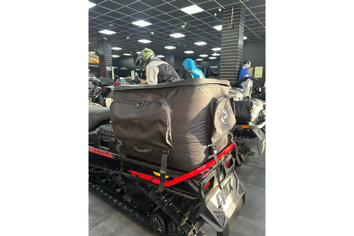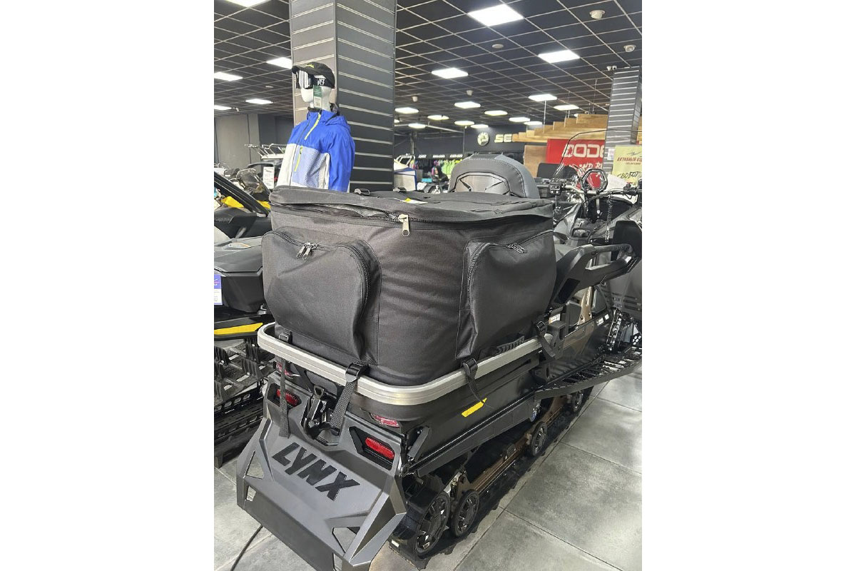 Текстильный задний кофр для снегоходов Lynx. Полужесткая конструкция сохраняет форму при эксплуатации. Объемное решение для перевозки груза.