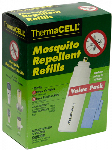 Комплект для зарядки ThermaCell R-4. Следите, чтобы расходные материалы не закончились! Убедитесь, что Ваши противомоскитные приборы ThermaCELL продолжают защищать Вас от надоедливых комаров. Вы можете запастись расходными материалами на длительный период времени. Так как картриджи и пластинки не обязательно использовать до конца их ресурса за один раз. Например, вы можете использовать их всего лишь один час в день, а между использованиями вынуть их, если период не использования будет больше 1 недели, то достаточно положить картонную пластинку в сухое, темное место.