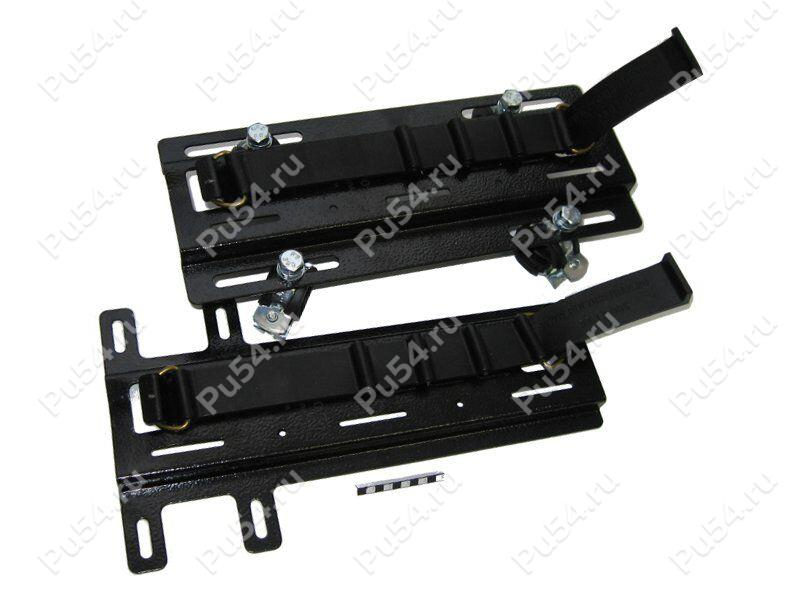 Комплект состоит из двух креплений (переднего и заднего), оснащенных хомутами для установки на трубы. Он предназначен для крепления лыж и других плоских предметов шириной не более 220 мм вдоль корпуса снегохода. Длина креплений составляет 280 мм. Они имеют 4 уровня крепления ремней для фиксации предметов разной формы. Ремень можно полностью отстегнуть и использовать металлическое основание как кронштейн для установки других универсальных креплений нашего производства (для лопаты, топора и других инструментов).