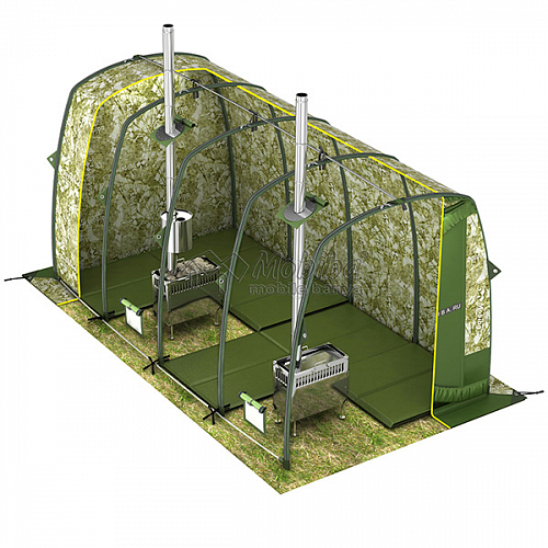 Плюсы использования мобильной бани - жилой палатки «МБ-104» с комплектом утепленного пола «ПУ-104»: