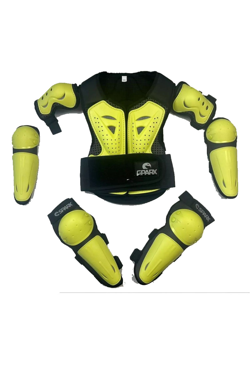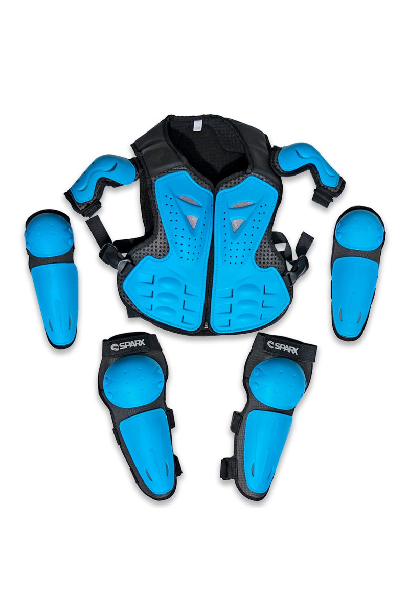 Набор детской мотозащиты для активного отдыха и спорта. Конструкция рассчитана на снижение риска травм при падениях. Комплект закрывает основные уязвимые зоны. Изделия подходят для эксплуатации в различных погодных условиях. Элементы выполнены из современных материалов. Анатомическая форма способствует комфорту при движении. Размерный ряд позволяет подобрать подходящий вариант.