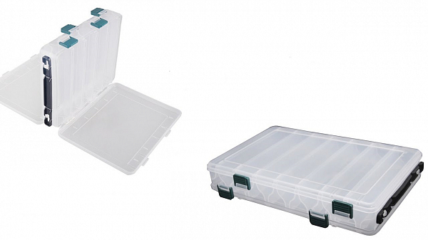 Хорошая бюджетная коробка, ничего лишнего. Понравилась тем, что двусторонняя. Удобно стоять ночью в воде и перебирать воблера.