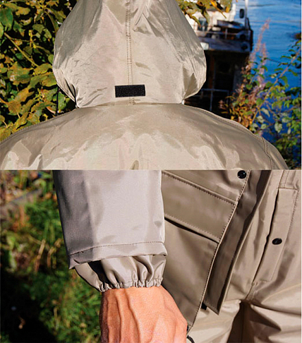 Профессиональный рыбацкий костюм, предназначенный для эксплуатации в самых жестких погодных условиях. Он не боится никакой погоды и на 100% непромокаем. Поверхностный нейлоновый слой плотностью 210D защищает этот рыбацкий костюм от проколов и протираний о грубые поверхности. Особенности: полная непромокаемость при любых осадках; свободный покрой; штаны с высокой грудью; 2 боковых кармана; защита 210D.