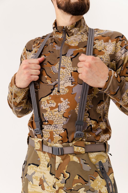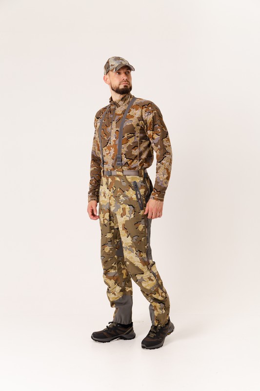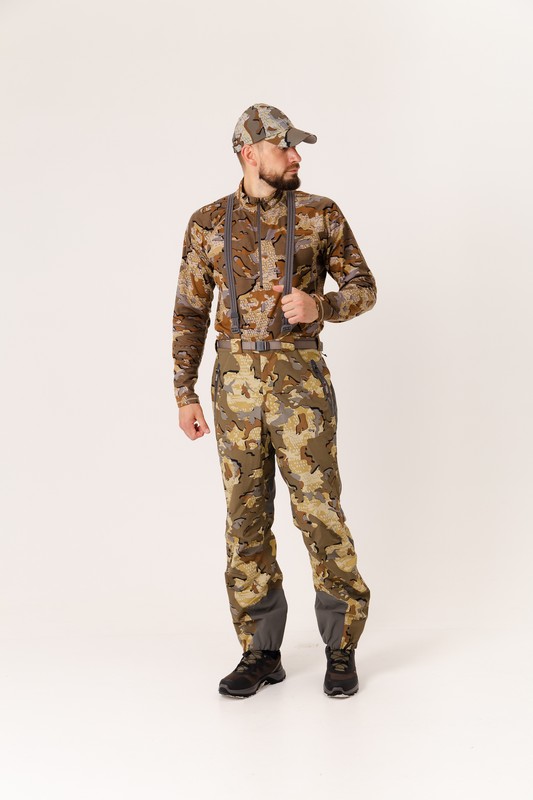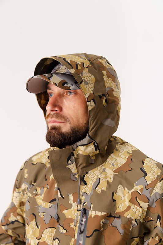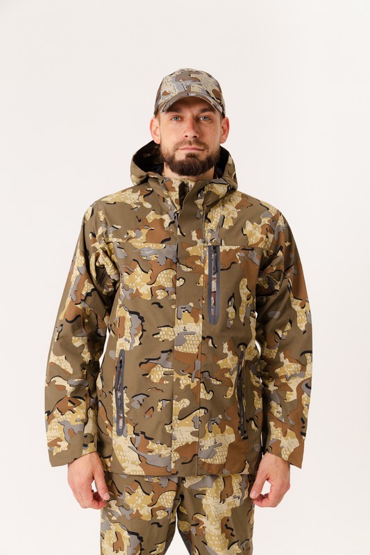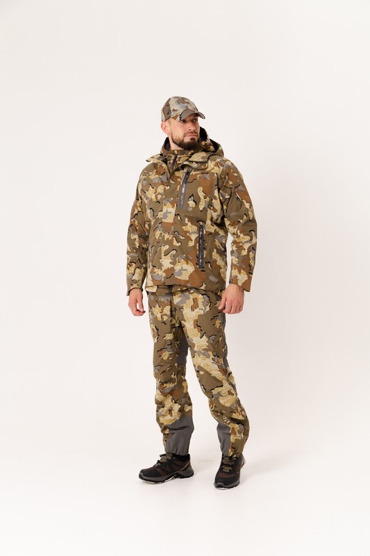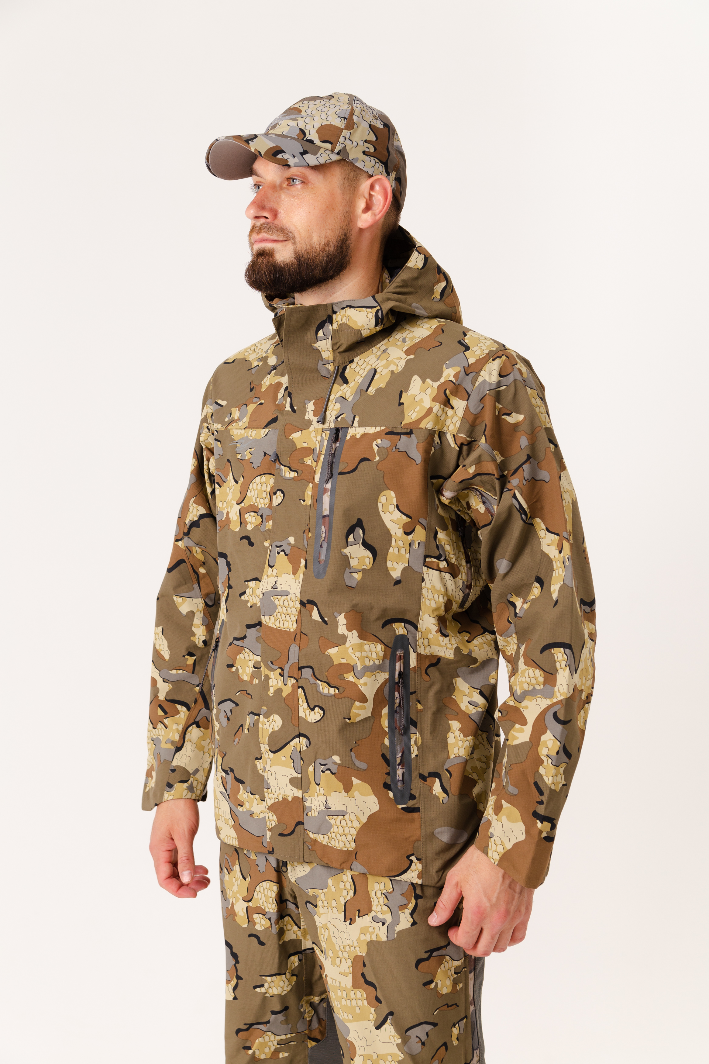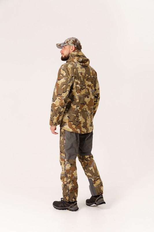 King Hunter EXTERIOR - это обновленная модель штормового костюма. Костюм стал еще легче, улучшен крой, функционал и дизайн куртки. Трехслойная мембранная ткань с проклеенными швами надежно защищает в экстремальных погодных условиях, таких как сильный ветер, проливной дождь. Куртка разработана специально для ношения поверх двух слоев одежды, увеличены проймы рукавов, для комфортного движения. Капюшон имеет регулировки в двух плоскостях, позволяет настроить его так, чтобы не ограничивал боковой обзор и при этом защищал от погодных условий. Так же на куртке добавлены вентиляционные молнии. Брюки имеют защиту задней части, силиконизированные подтяжки, боковые молнии во всю длину брюк для более удобного надевания и вентиляции.