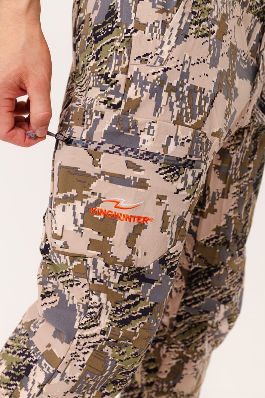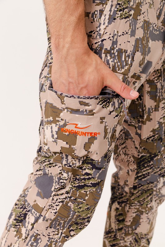 Костюм King Hunter SUMMER LIGHT является самым дышащим и паропроницаемым вариантом в линейке King Hunter. Это основной выбор охотников и рыбаков для жаркой погоды. Костюм изготовлен из быстросохнущего нейлонового материала с четырехсторонней растяжимостью, что помогает сохранять прохладу в жаркую погоду. Брюки и куртка имеют анатомический крой, специально предназначенный для активного передвижения. Костюм эффективно выводит наружу тепло и испарения тела, обеспечивая комфорт при прохождении любых расстояний. Для улучшения вентиляции все карманы оснащены сетчатой подкладкой.