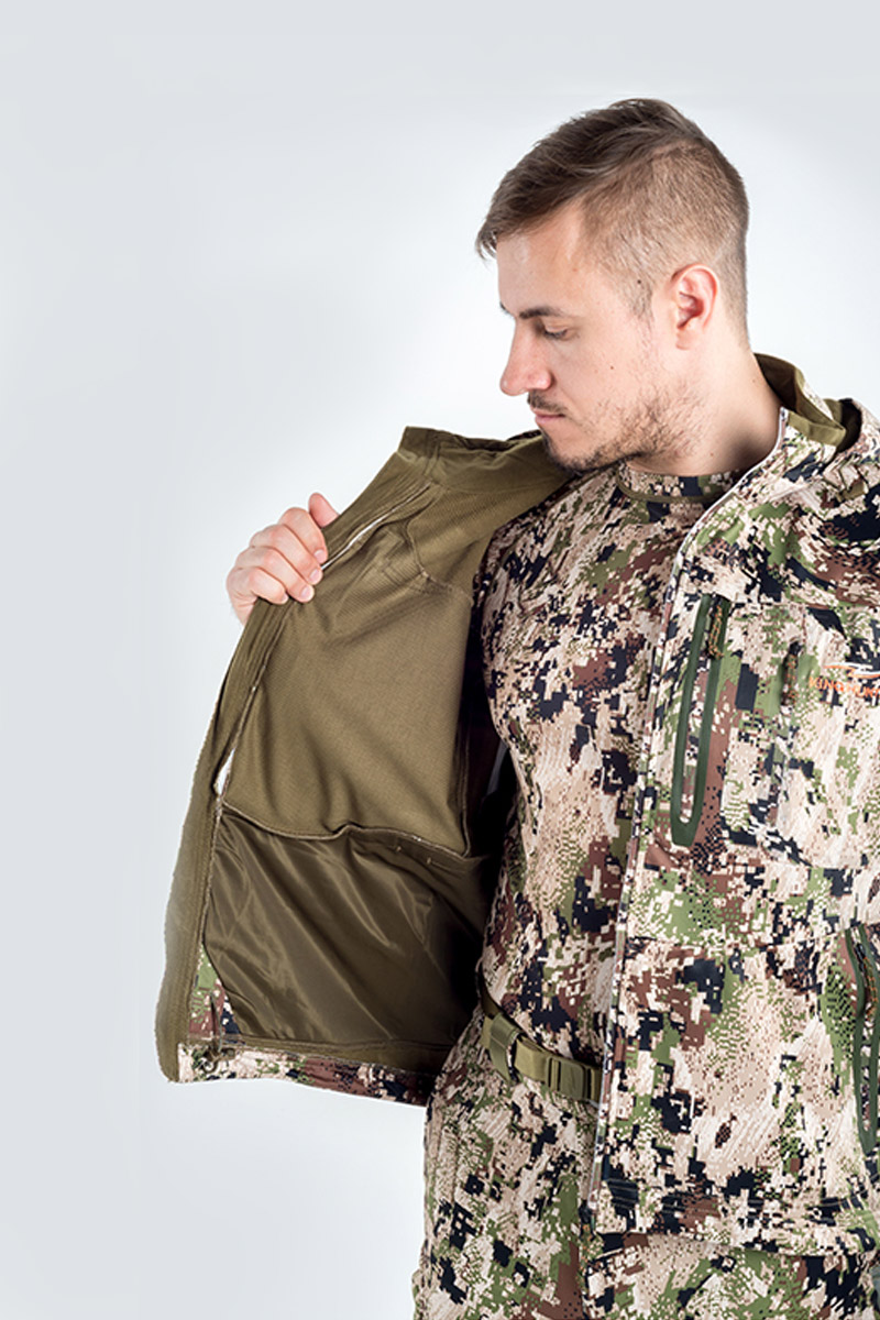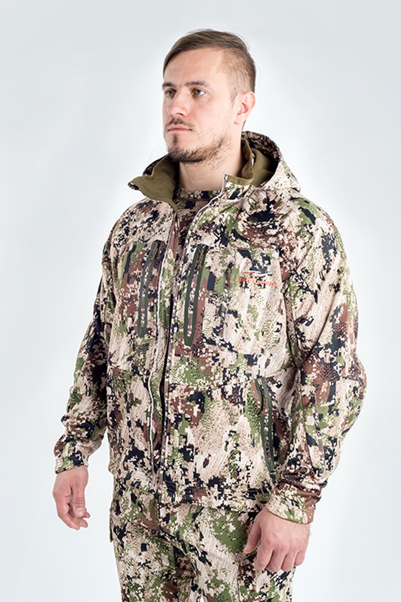 Абсолютно не продуваемый материал Soft-shell, сохраняет максимум тепла на ветру, но, в то же время, пропускает испарения от кожи, создавая для Вашего тела теплый и сухой микроклимат. На куртке предусмотрены два боковых и два нагрудных кармана на молнии, а также дополнительный нагрудный карман для размещения дальномера, навигатора и прочих принадлежностей.