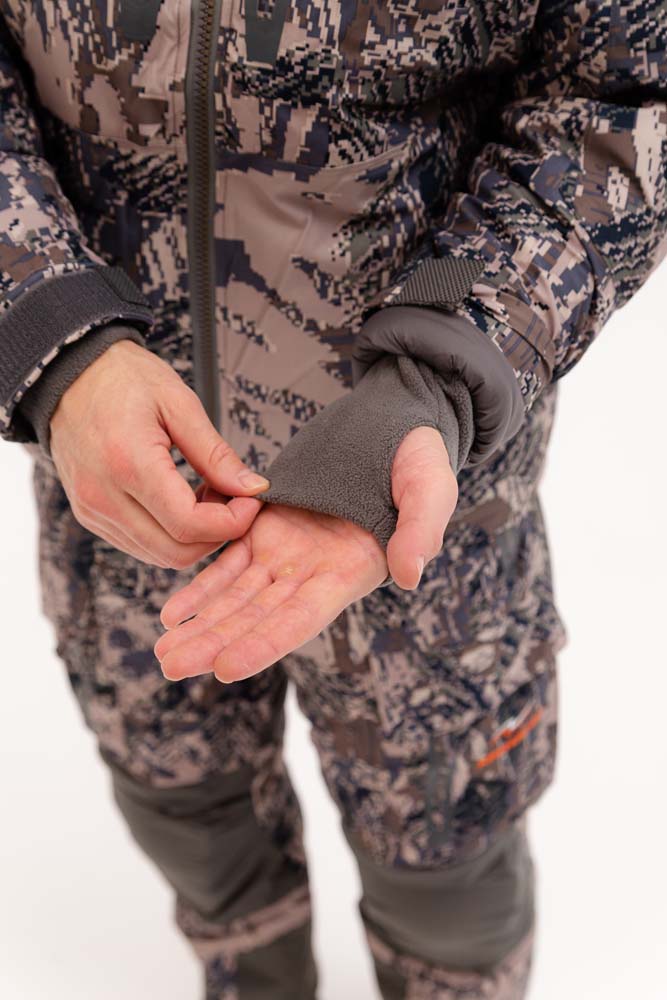 - Ветронепроницаемый, утепленный капюшон защитит вас от зимней стужи, он имеет анатомическую форму с возможностью регулировки в двух плоскостях, что позволит вам идеально подстроить его под форму головы. Водозащищенные манжеты рукавов с полуперчаткой защитят руки от холода.