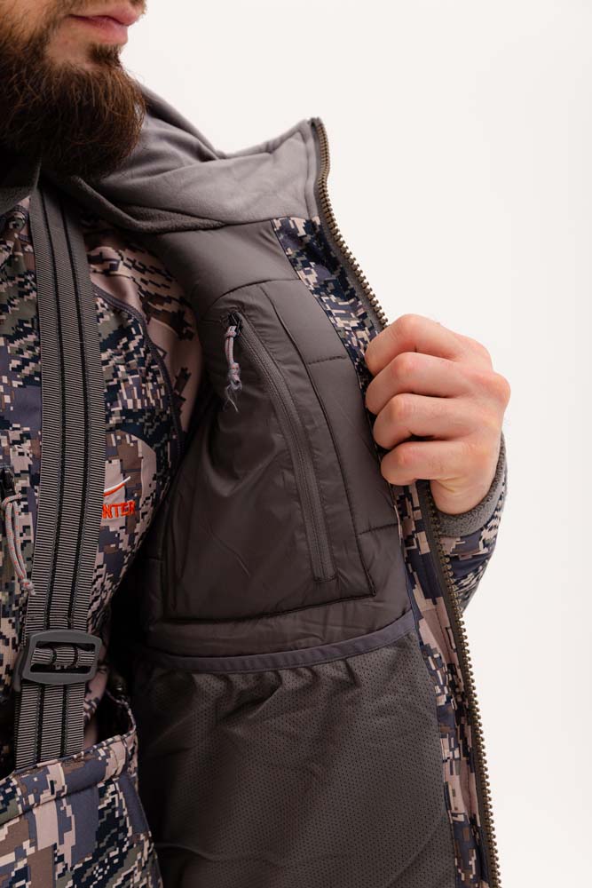 - Костюм дополнен электрическим подогревом в области плечей, подогрев станет великолепным дополнением на охоте в засидке или при низкой активности на рыбалке.