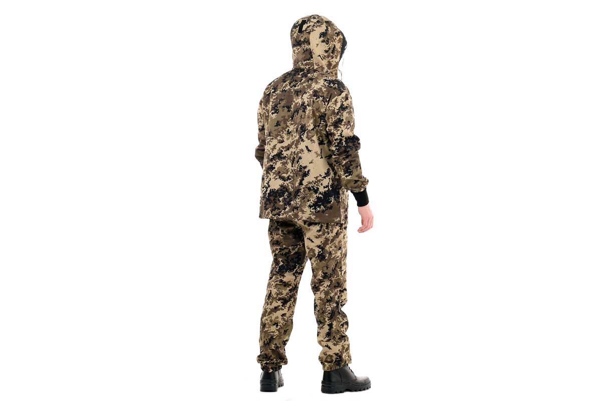 Сетка накомарника съемная и легко убирается в потайной карман. Плотная ткань создает надежную защиту, позволяет телу «дышать» и надежно защищает от насекомых. Рукава оснащены плотными трикотажными манжетами. Этот костюм отлично подойдет для всех, кто много бывает в лесу.