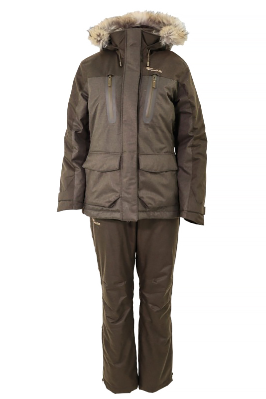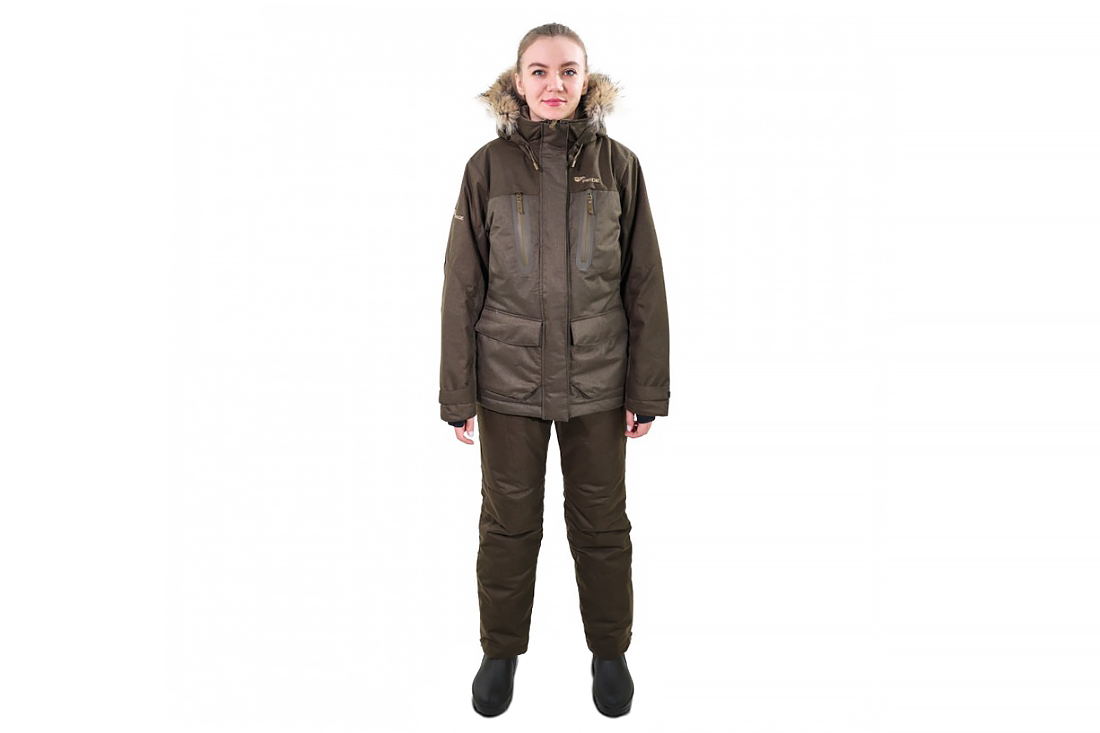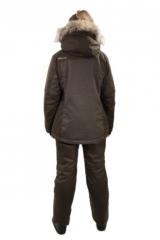 Костюм Novatex Artemida -15 (Артемида) (бавария, коричневый) состоит из куртки удлинённого кроя и брюк с завышенной спинкой и подтяжками. Ткань не пропускает воду от дождя или мокрого снега. Утеплитель компактный и лёгкий. Костюм хорошо сидит, движения не сковываются. Куртка застёгивается на молнию сверху и снизу. Ветрозащитная планка с двумя клапанами закрывается бесшумными магнитными кнопками. Такие же застёжки – на карманах. Капюшон несъёмный, регулируется по овалу лица и объёму. Есть опушка из искусственного меха. За ненадобностью её можно отстегнуть. Рукава регулируются хлястиками на липучках. Внутри предусмотрены манжеты из эластичного материала, что дополнительно защищает от продувания. В куртке 7 карманов. Все внешние карманы имеют мягкую и тёплую подкладку.