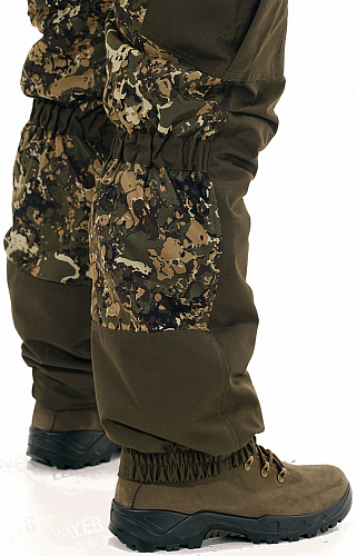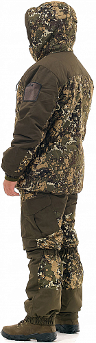 Все застежки-молнии дополнены фирменными пуллерами, что позволяет с комфортом пользоваться ими не снимая перчаток. Плечи, область коленей, зона сидения дополнительно усилены износостойкой мембранной тканью кошачий глаз. Рекомендован для военных, охотников, рыбаков, туристов, любителей военно-спортивных игр, представителей силовых структур.