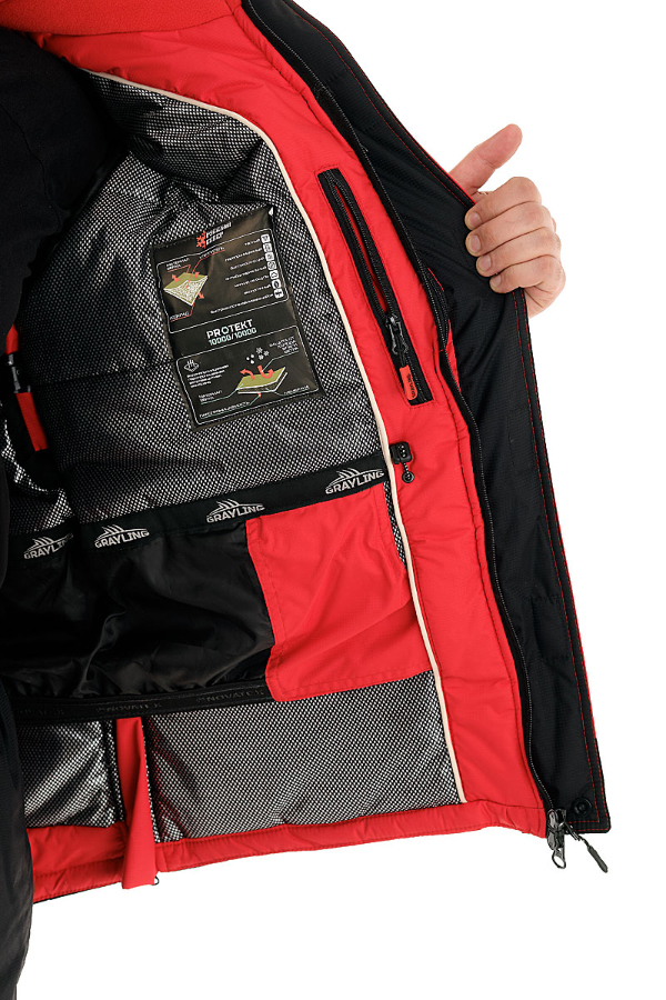 - Два объемных накладных кармана на груди застегиваются на молнии. Два нижних объемных кармана с клапанами на магнитных кнопках утеплены вельбоа для согрева рук. Под ветрозащитной планкой карман с флисовым подкладом на молнии для сотового телефона. Внутренний карман для документов на молнии.