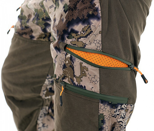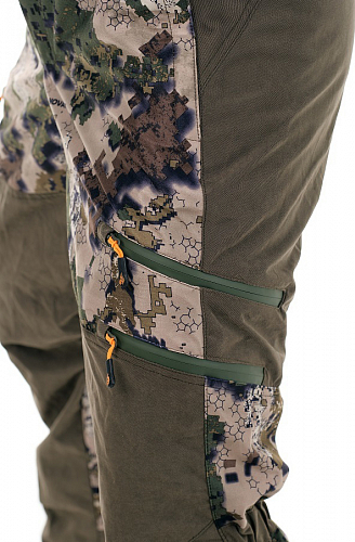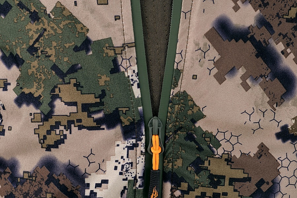 В купе с простым уходом, это дало модели хорошую защиту от влаги, ветра и холода. В качестве ключевых особенностей модели можно выделить наличие большого количества карманов на молнии разной величины для хранения небольших предметов, навесные пуллеры на собачках молнии оранжевого цвета и камуфляжный окрас «Кобра», комбинированный с вставками оливкового цвета.