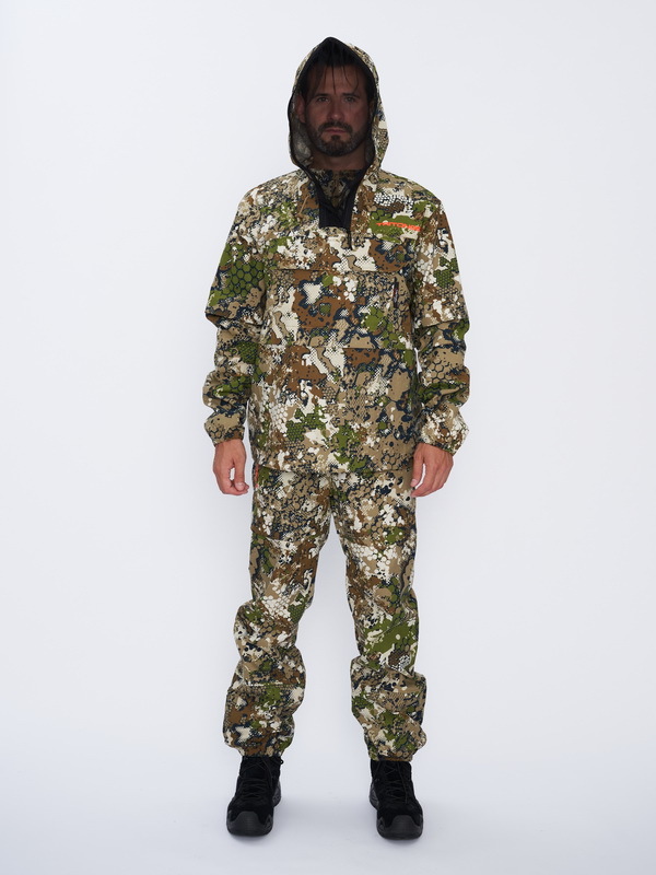 Костюм снабжен регулируемым по объёму капюшоном с фиксаторами и съёмной антимоскитной сеткой с мелкоячеистой структурой, которая прекрасно пропускает свет и не мешает обзору, хорошо защищает от мошек, комаров, гнуса и клещей.