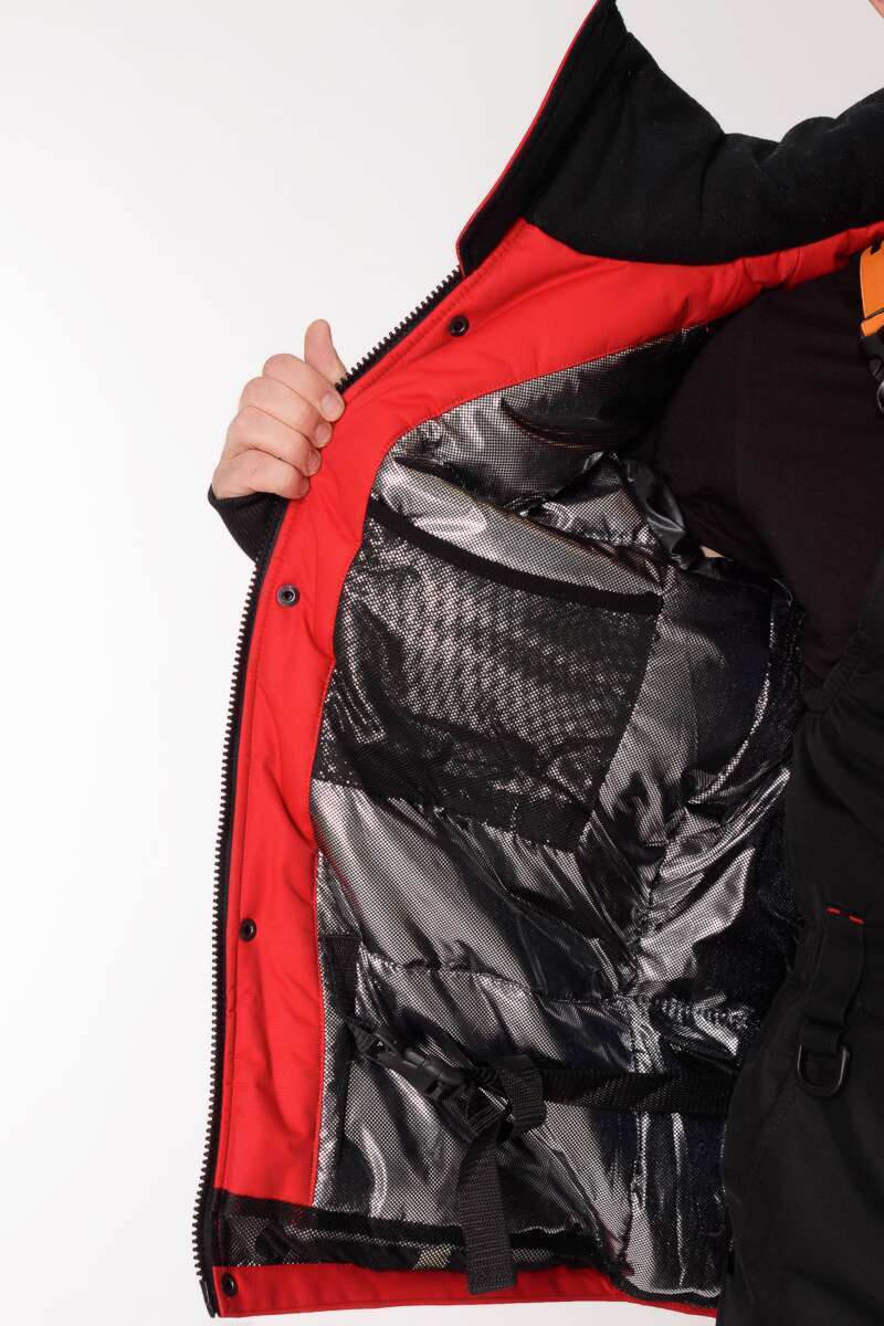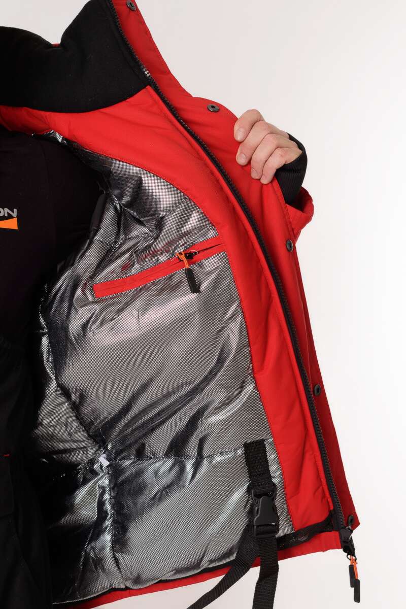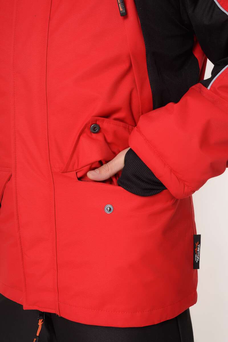 Изготовлен из качественного современного материала Таслан (100% нейлон) - долговечной, устойчивой к истиранию и многократным изгибам мембранной ткани нового поколения с высокими показателями паропроницаемости и водостойкости (10000/10000). Сочетает в себе теплоизолирующие, ветро- и влагоустойчивые показатели и прочность наружного слоя. Внешняя поверхность блокирует ветер, а внутренний слой ткани защищает от избыточной влаги. Комбинированный цвет красный/чёрный.