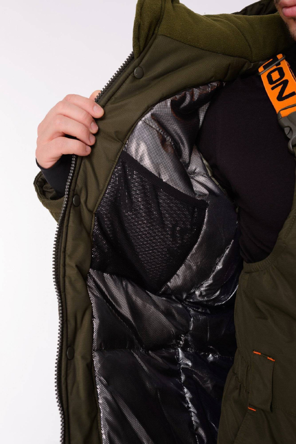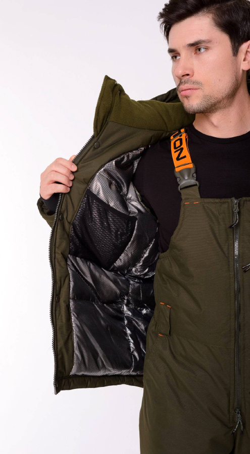 Фольгированный подклад с антибактериальным покрытием и ионами серебра создает дополнительную теплостойкость, отражая выделяемое телом тепло и удерживая его внутри, а микроскопические ячейки в структуре материала способствуют выведению излишек тепла и влаги наружу, способствуя созданию комфортных условий.