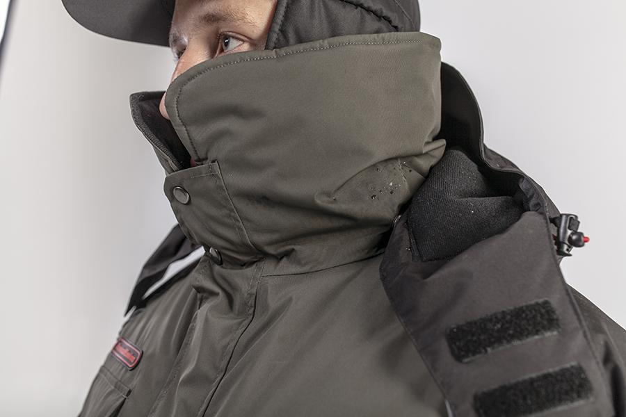 Теплый, непродуваемый раздельный костюм из непромокаемой ткани c мембраной AERO-TEX и проклеенными швами. Костюм предназначен для зимней рыбалки в сырую холодную погоду до - 35 С.