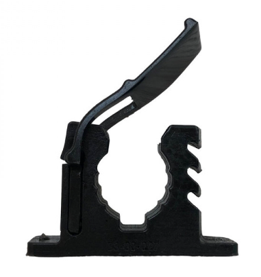 Прочный, эластичный материал: изделия из полиуретанов хорошо переносят растяжение и многократные изгибы без разрушения. Устойчив к агрессивным средам, в том числе: к нефтесодержащим продуктам, щелочам, кислотам, к озону, ультрафиолетовым лучам и морской воде. Долговечней резиновых аналогов. Рассчитан для крепления предметов диаметром от 25 до 35 мм. Удобен для крепления и хранения фонариков, лопат и прочих инструментов со стандартным диаметром черенка, а также для фиксации труб и шлангов. Крепится двумя болтами (не поставляются в комплекте). Может комплектоваться металлическим кронштейном 33-20-0201 и крепиться на подголовник спинки сидения. Также может комплектоваться металлической треногой 33-20-171.